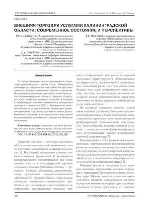 Внешняя торговля услугами Калининградской области: современное состояние и перспективы