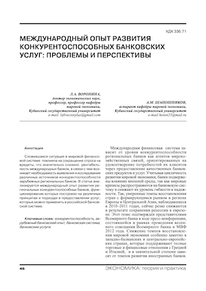 Международный опыт развития конкурентоспособных банковских услуг: проблемы и перспективы