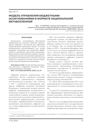 Модель управления бюджетными ассигнованиями в формате национальной метавселенной