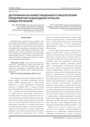 Детерминанты инвестиционного обеспечения предприятий судоходной отрасли новых регионов