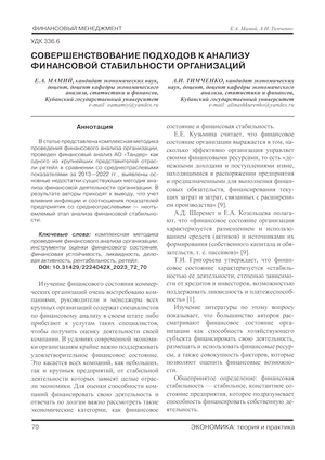 Совершенствование подходов к анализу финансовой стабильности организаций