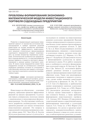 Проблемы формирования экономико-математической модели инвестиционного портфеля судоходных предприятий