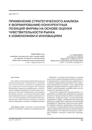 Применение стратегического анализа к формированию конкурентных позиций фирмы на основе оценки чувствительности рынка к изменениям и инновациям