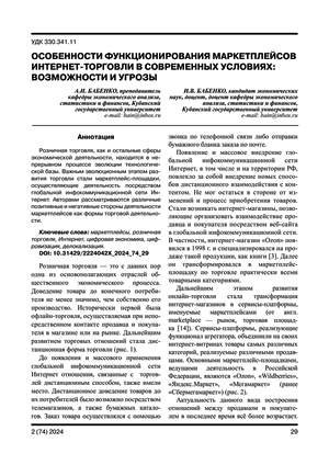 Особенности функционирования маркетплейсов интернет-торговли в современных условиях: возможности и угрозы