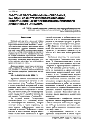 Льготные программы финансирования как один из инструментов реализации инвестиционных проектов инжинирингового дивизиона ГК «Росатом»