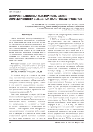Цифровизация как фактор повышения эффективности выездных налоговых проверок