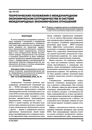 В статье проведено исследование существующих подходов к пониманию и определению международного экономического сотрудничества, дана характеристика его ключевых принципов, выявлены его субъектный, предметный и функциональный компоненты, выделены особенности форм сотрудничества, уточнены виды и типы сотрудничества. Вопрос экономической природы сотрудничества стал актуален в последние десятилетия на фоне глобализационных процессов в мировой экономике. Цель статьи — упорядочивание и систематизация теоретических аспектов сотрудничества как экономической категории в системе международных экономических отношений.