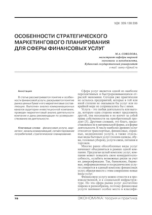 Особенности стратегического маркетингового планирования для сферы финансовых услуг