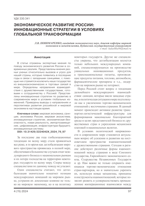 Экономическое развитие России: инновационные стратегии в условиях глобальной трансформации