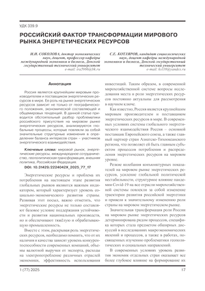 Российский фактор трансформации мирового рынка энергетических ресурсов