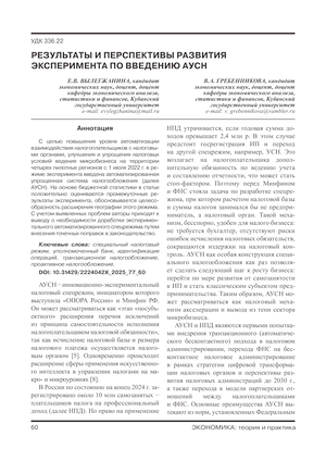 Результаты и перспективы развития эксперимента по введению АУСН