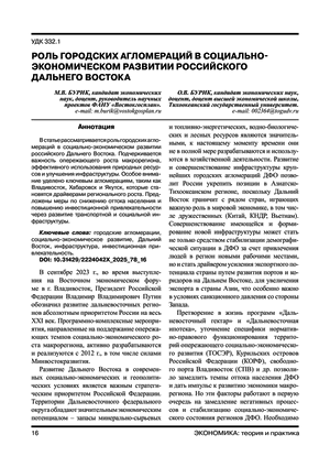 Роль городских агломераций в социально-экономическом развитии российского Дальнего Востока