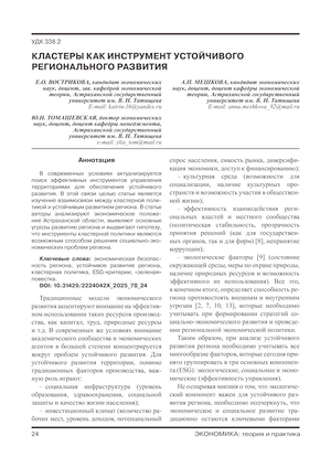 Кластеры как инструмент устойчивого регионального развития
