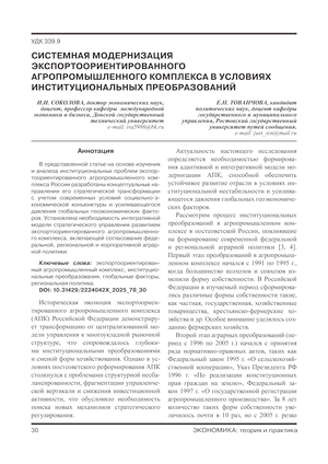 Системная модернизация экспортоориентированного агропромышленного комплекса в условиях институциональных преобразований