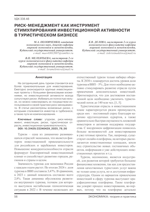 Риск-менеджмент как инструмент стимулирования инвестиционной активности в туристическом бизнесе