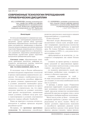 - Исупова С.С. Современные методики преподавания управленческих, экономических и правовых дисциплин в высшей школе // Образование и воспитание дошкольников, школьников, молодежи: теория и практика. 2022. № 2. С. 75–85.