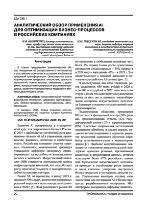 - Абашкин В. Л., Ковалева Г.Г. Применение искусственного интеллекта в российских компаниях. М., 2025 URL: https://issek.hse.ru/news/1083541394.html