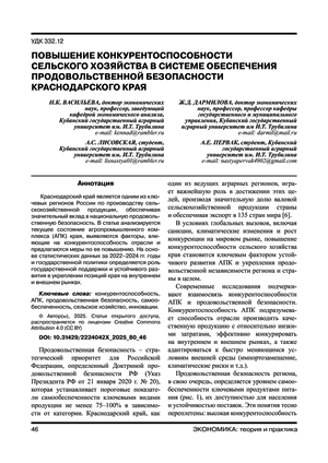 Повышение конкурентоспособности сельского хозяйства в системе обеспечения продовольственной безопасности Краснодарского края