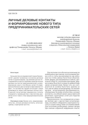 Личные деловые контакты и формирование нового типа предпринимательских сетей