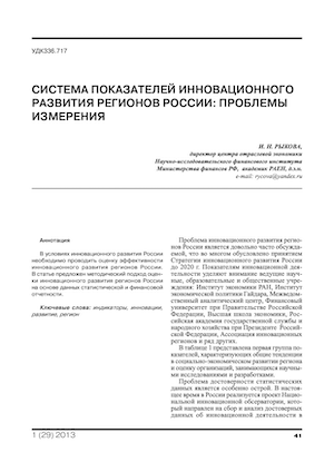 Система показателей инновационного развития регионов России: проблемы измерения